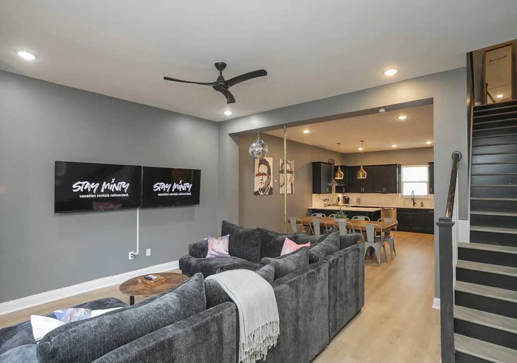 Modern 3BR/3.5BA Nashville townhome sleeps 8+ with epic game room featuring pool table, ping pong & disco lights! Just 3 miles from Broadway in gated community. Designer kitchen, open-concept living with dual TVs, Music City decor. Each bedroom has en-suite bath. Perfect for bachelor/bachelorette parties, families & large groups. Free parking, high-speed WiFi, fully equipped kitchen, washer/dryer. Minutes to Ryman, Germantown, Grand Ole Opry & all major Nashville attractions!